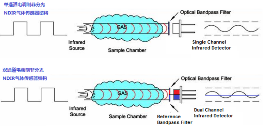 非色散紅外Non-DispersiveInfraRed(NDIR)傳感器是一種由紅外光源、光路、紅外探測(cè)器、電路和軟件算法組成的光學(xué)氣體傳感器。由于NDIR氣體傳感器基本原理所限,只是具有非對(duì)稱(chēng)分子結(jié)構(gòu)的氣體才能夠?qū)t外線(xiàn)具有較強(qiáng)的...